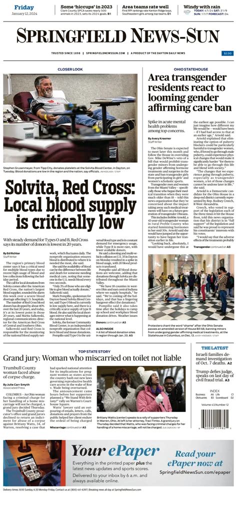 Support Local Journalism: By reading the Springfield News Sun , you’re supporting local journalism and helping ensure that your community has a reliable source of information. Local newspapers play a vital role in holding local leaders accountable, investigating important issues, and providing a platform for diverse voices. Your support helps sustain this essential service.