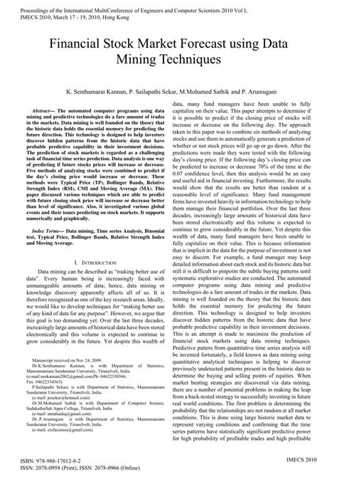 Think about it like this: the stock market is constantly reacting to a multitude of factors. Interest rate changes, geopolitical events, quarterly earnings reports – the list goes on. Each piece of information acts like a ripple, creating waves of price fluctuations. Data mining helps us understand how these ripples create the bigger picture. We use algorithms to analyze historical data, identify trends, and build models that can forecast future stock prices. It’s a bit like being a detective, piecing together clues to solve a complex mystery. But instead of a crime, we’re solving the puzzle of the stock market. Some of the most common techniques used here involve regression analysis, which helps to identify how different variables are related, and classification, which helps to put stocks into categories (e.g., undervalued, overvalued). Clustering is also used to group similar stocks together. These are essential for providing a sound stock market forecast . Data mining doesn’t provide a sure-fire guarantee, but it helps increase our chances of making smart moves in the market.