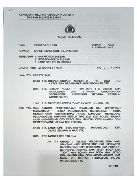 Surat Telegram Kapolri , simply put, is an official telegram issued by the Chief of the Indonesian National Police. These telegrams serve as a crucial communication tool within the police force, conveying important directives, instructions, announcements, and updates. Think of it as the official memo system for Polri, ensuring that everyone from the top brass to officers in the field are on the same page. These telegrams cover a wide range of topics, from operational guidelines and personnel changes to policy updates and strategic directives. The content can be highly varied, addressing everything from routine administrative matters to urgent security concerns.