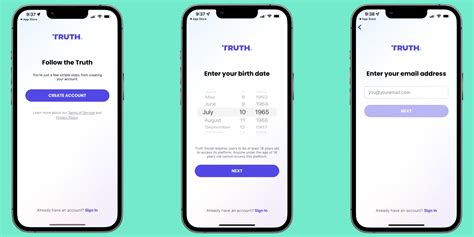 4. Enter Your Details : You’ll need to provide your full name , date of birth , and a valid email address . Make sure your email address is correct because you’ll need to verify it later. Also, Truth Social requires you to be at least 18 years old to sign up, so keep that in mind when entering your birth date.