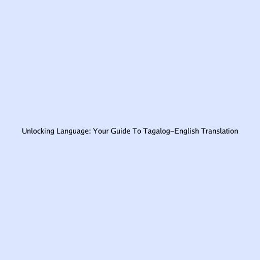 Unlocking Language: Your Guide to Tagalog-English Translation