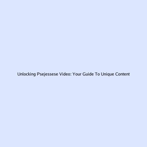 Unlocking Psejessese Video: Your Guide to Unique Content