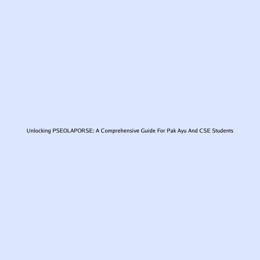Unlocking PSEOLAPORSE: A Comprehensive Guide For Pak Ayu And CSE Students