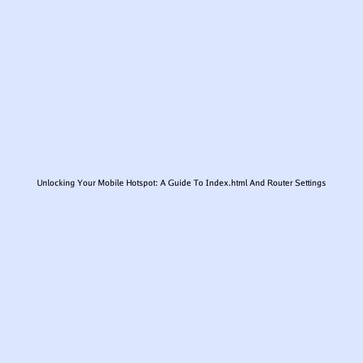 Unlocking Your Mobile Hotspot: A Guide To Index.html And Router Settings