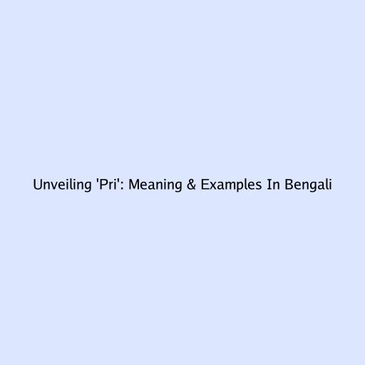 Unveiling 'Pri': Meaning & Examples In Bengali