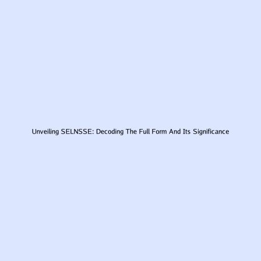 Unveiling SELNSSE: Decoding The Full Form And Its Significance
