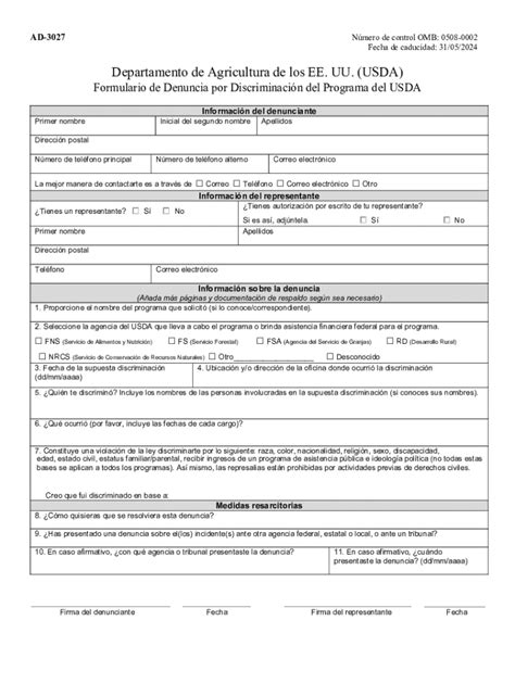 The importance of having the complaint form available in Spanish cannot be overstated. It ensures that individuals who are more comfortable communicating in Spanish can accurately and effectively report their experiences. This promotes inclusivity and ensures that language barriers do not prevent anyone from exercising their right to file a complaint. Access to the form in Spanish is not just a matter of convenience; it’s a matter of equity and justice. By providing the form in Spanish, the USDA demonstrates its commitment to reaching and serving all communities, regardless of their primary language. This helps to build trust and encourages more people to come forward with their complaints, which in turn allows the USDA to identify and address systemic issues of discrimination more effectively. The availability of the Spanish complaint form also helps to ensure that the complaint process is fair and transparent, as it allows individuals to understand their rights and responsibilities in their own language. This empowers individuals to take control of their situation and seek redress for any harm they have suffered. Ultimately, providing the complaint form in Spanish is a critical step in ensuring that the USDA’s programs and activities are accessible to everyone and that discrimination is not tolerated.