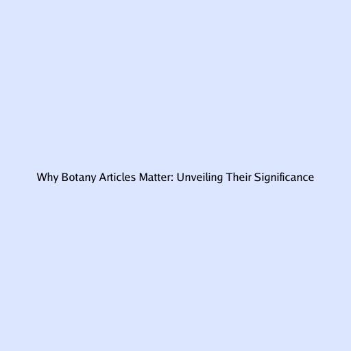 Why Botany Articles Matter: Unveiling Their Significance