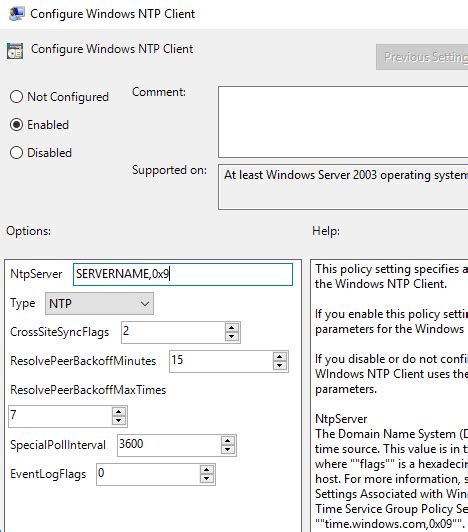 ***: This setting determines the type of synchronization the client will use.NT5DSis the default for domain-joined computers and means they will try to find a time source within the Active Directory domain hierarchy.NTPmeans it will use the sources specified in the***field directly.*** -