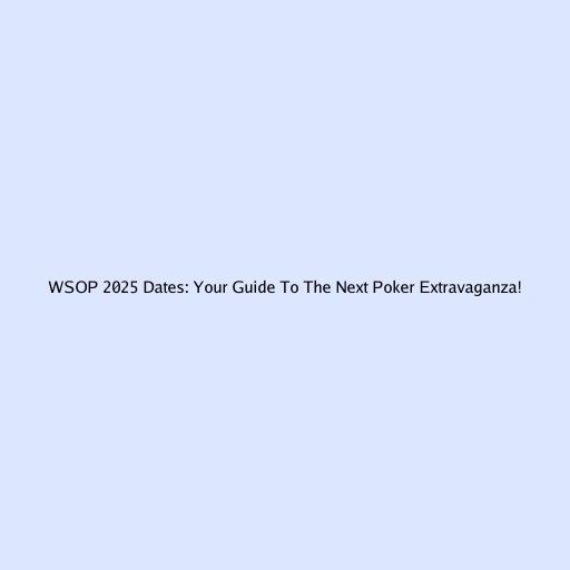 WSOP 2025 Dates: Your Guide to the Next Poker Extravaganza!